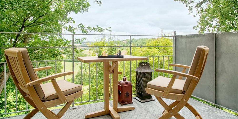 This large air-conditioned duplex suite offers a wonderful blend of comfort, style and luxury. With is large view over Saint Clar valley, this suite enjoys the benefit of a balcony.